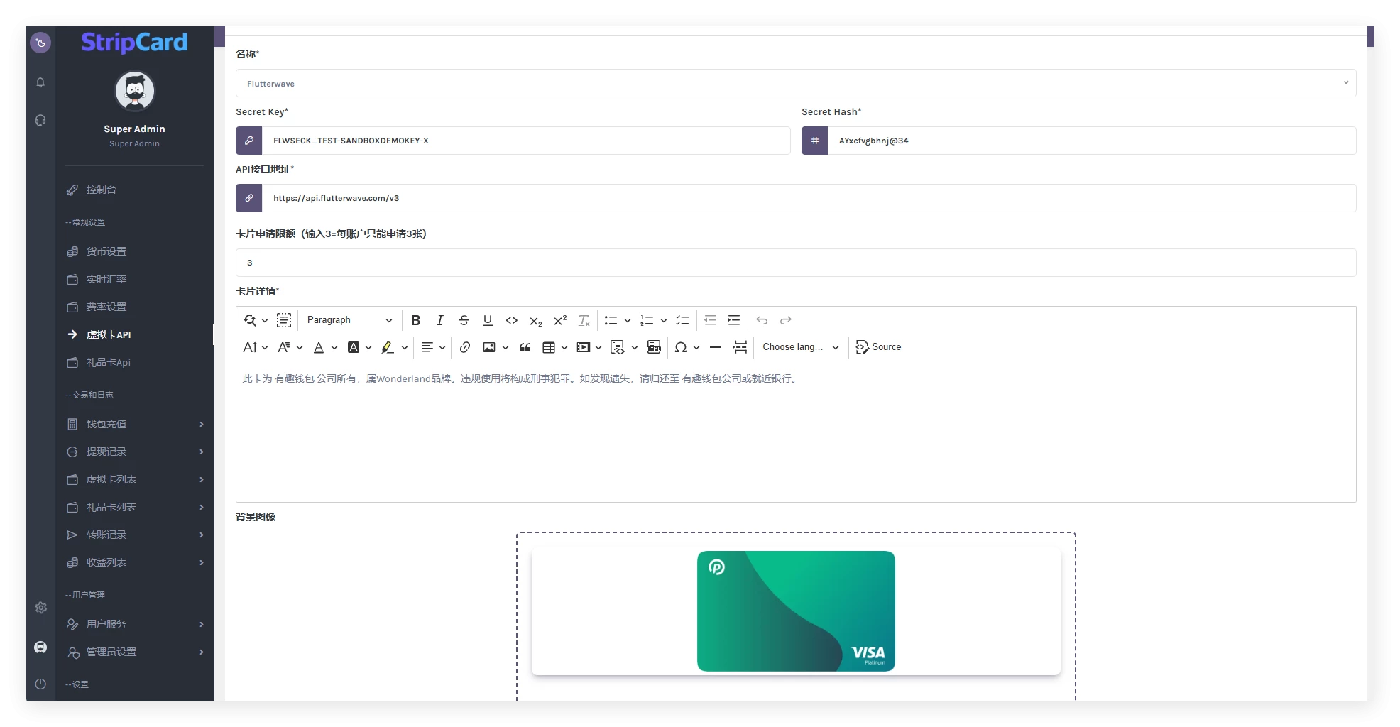 设置虚拟卡 API:配置 API 以启用虚拟卡生成和管理,以实现安全的在线支付。