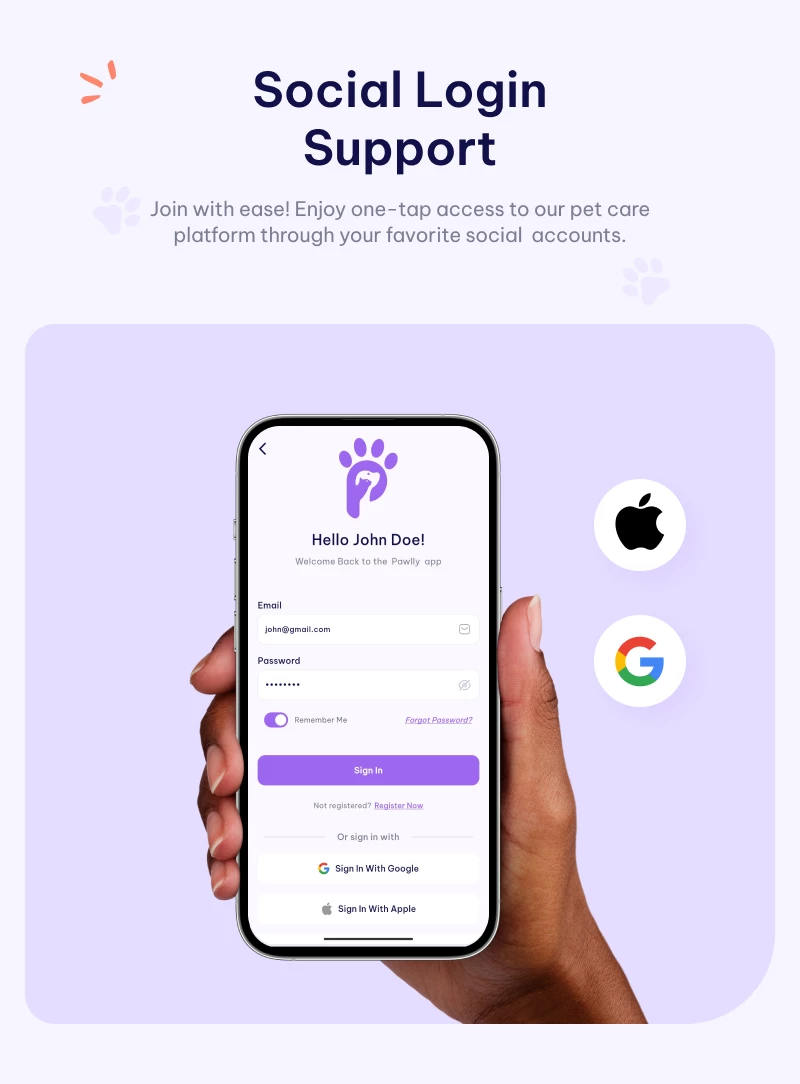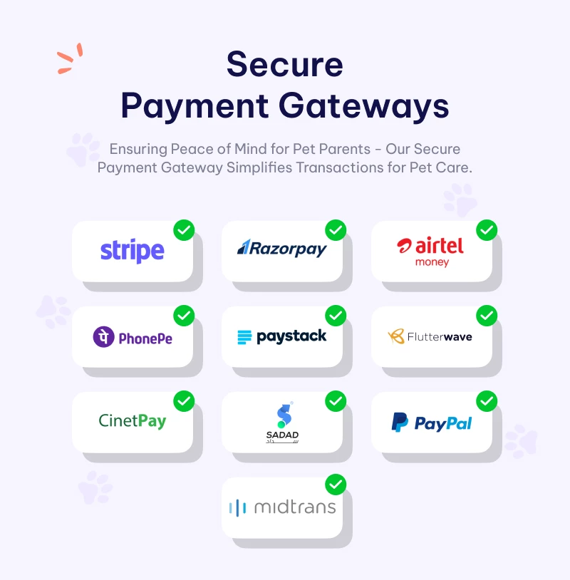Pawlly 采用尖端技术,例如用于推送通知的 OneSignal 和用于在线交易的 多个支付网关,确保无缝且安全的用户体验。