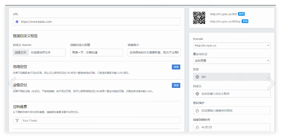 短网址生成源码,防风防虹可以自定义转跳页面和生成各种样式的二维码,详细的链接统计 包含许多独特的功能。