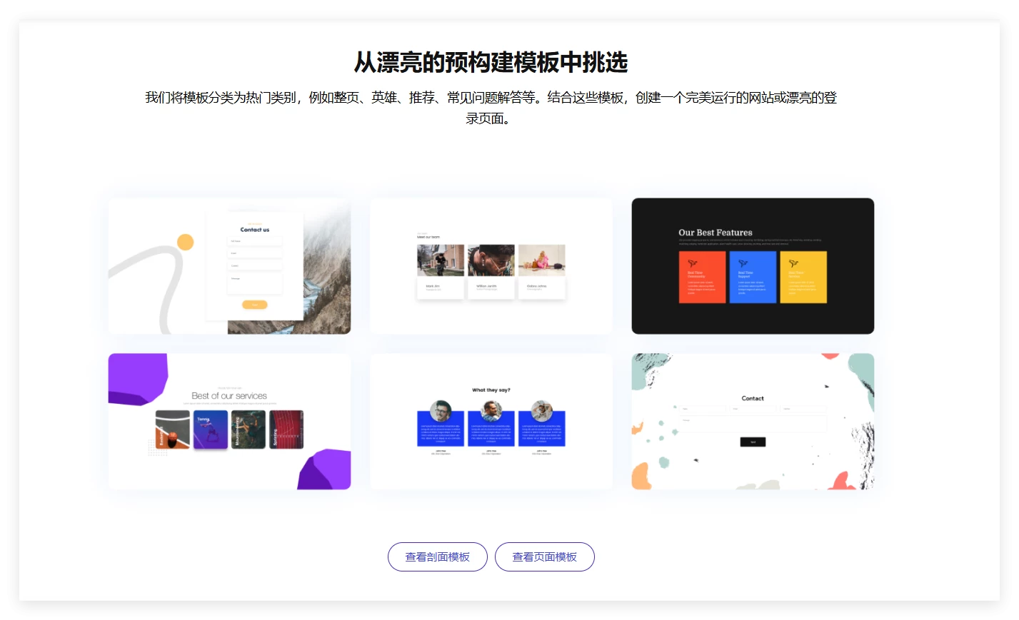 中进行选择。我们将模板分类为热门类别,例如英雄、推荐、常见问题解答等。结合这些部分,创建一个完美运行的网站或漂亮的登录页面。特殊的