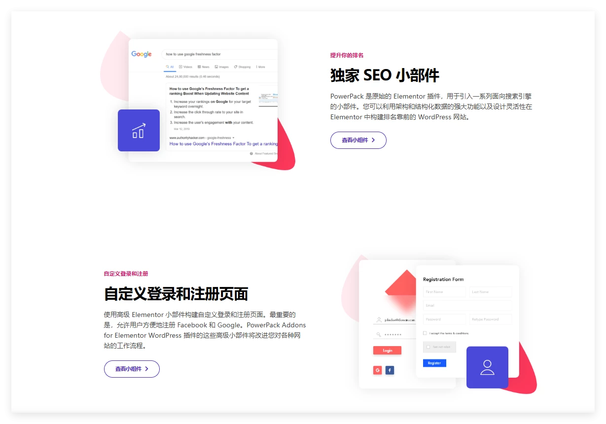 ,用于引入一系列面向搜索引擎的小部件。您可以利用架构和结构化数据的强大功能以及设计灵活性来构建高排名网站。自定义登录和注册页面。使用高级 Elementor 小部件构建自定义登录和注册页面。允许用户方便地注册
