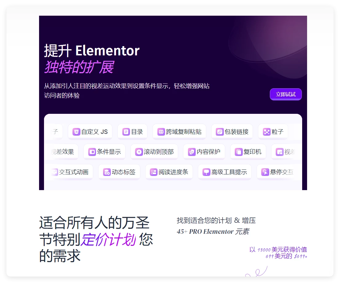 - 使用我们易于使用的创意元素为您的页面构建器添加功能,让您的下一个 WordPress 页面看起来比以往任何时候都更漂亮。