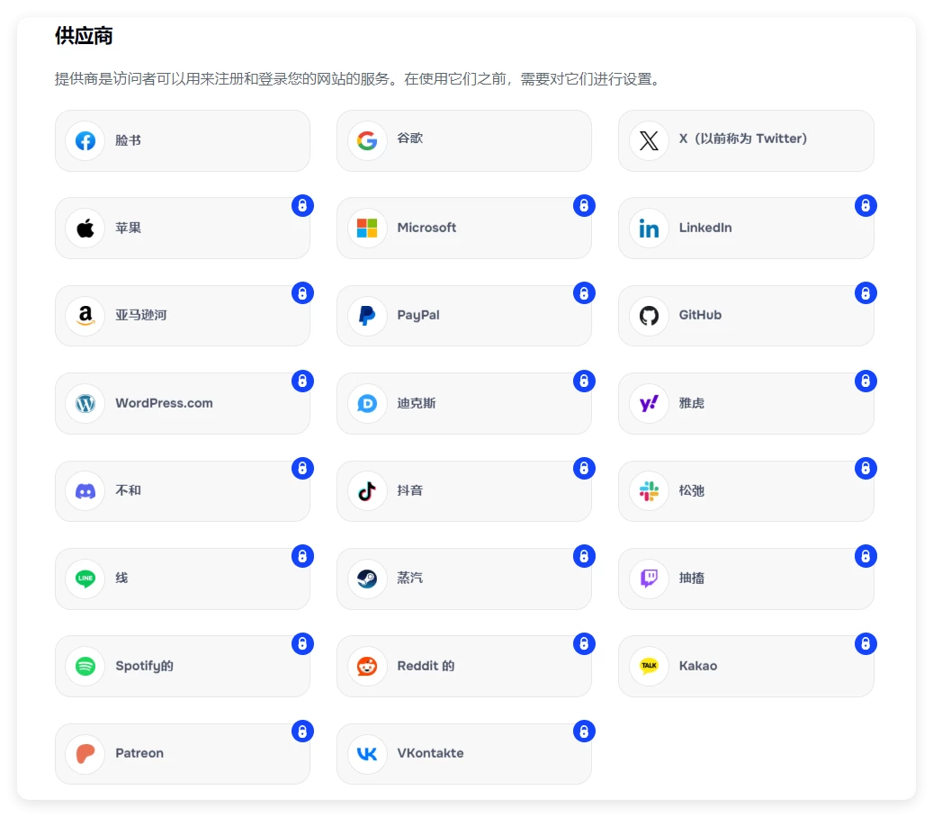 5. 配置您要使用的提供程序。 (您可以在插件配置界面找到每个提供商的详细说明)