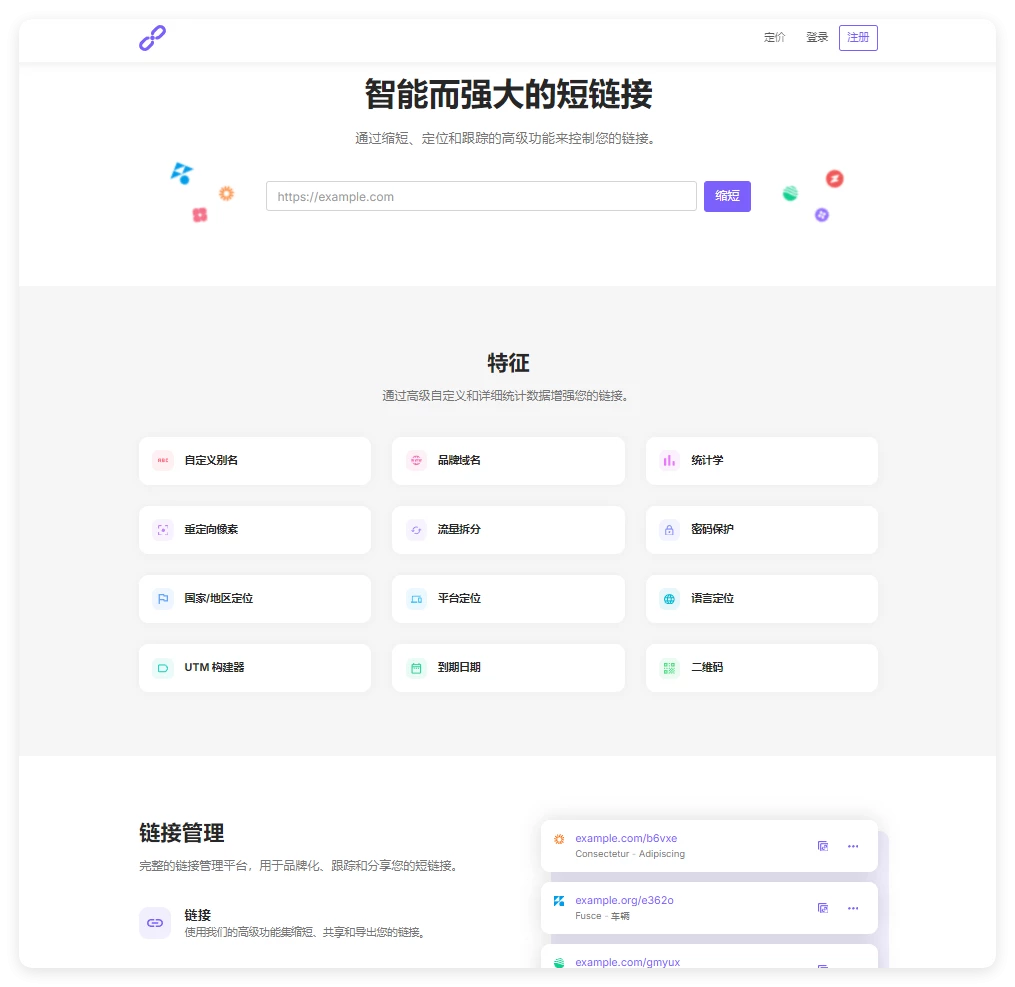 用户功能围绕 「链接全生命周期」 设计,满足个人或团队对链接的精细化运营需求,核心功能如下: