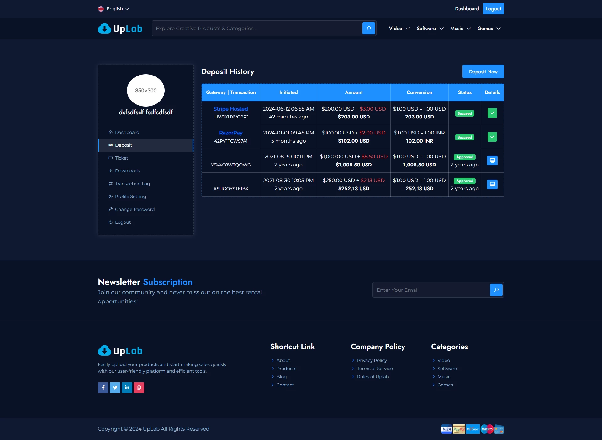 - 个人账号管理:包含个人资料编辑、密码修改、 2FA 安全设置;可查看下载记录、购买日志,管理账户存款。