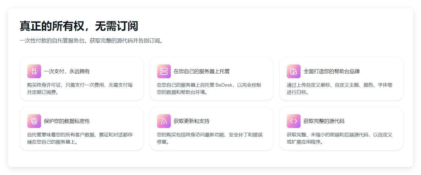 - 易于安装 – 使用我们易于使用的安装程序和文档,无需编码或服务器知识,只需几分钟即可轻松安装 BeDesk 。