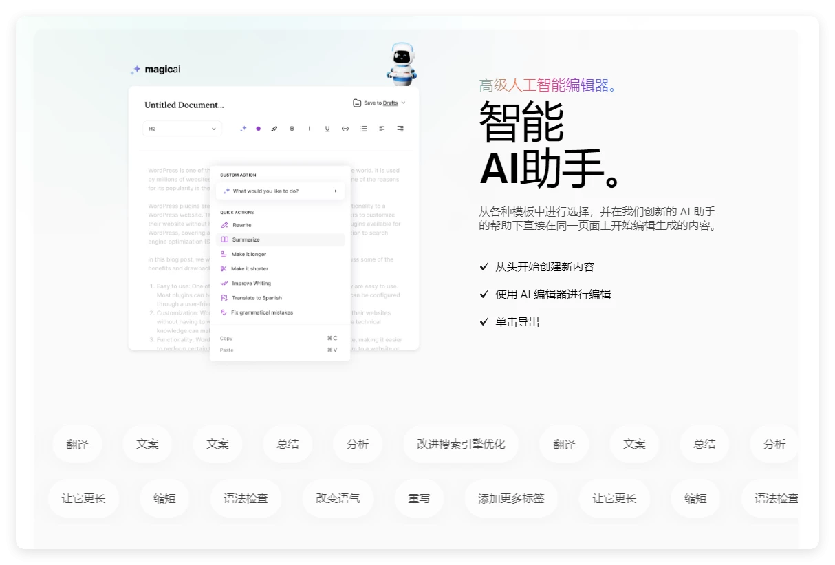魔术人工智能 IA 工具 帮助您立即生成高质量的内容,而无需费事费力。