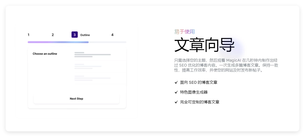 只需选择您的主题,然后观看 MagicAI 在几秒钟内制作出经过 SEO 优化的博客内容。