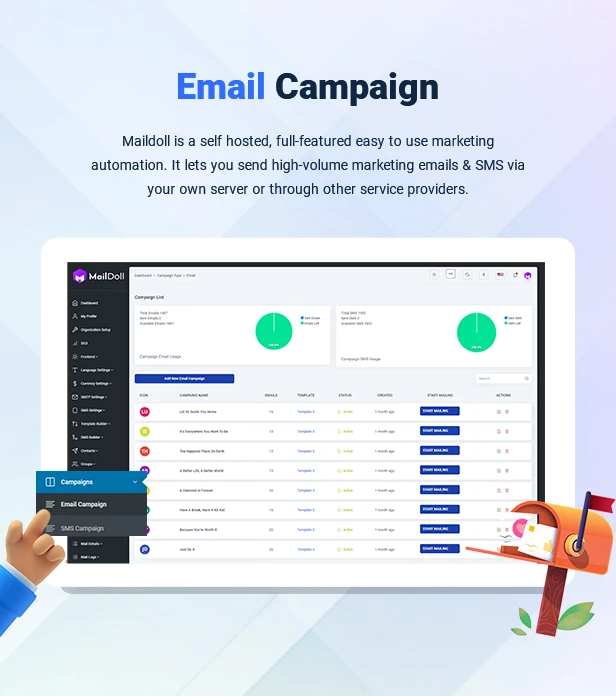 欢迎使用 Maildoll,这是最好的电子邮件营销软件和电子邮件营销应用程序。外贸邮件营销,邮件群发系统源码,这不仅仅是任何电子邮件营销脚本。它是一款全面的电子邮件营销工具,旨在简化您的生活并提高您的成果。使用 Maildoll,您还可以进行短信营销来发展您的业务。