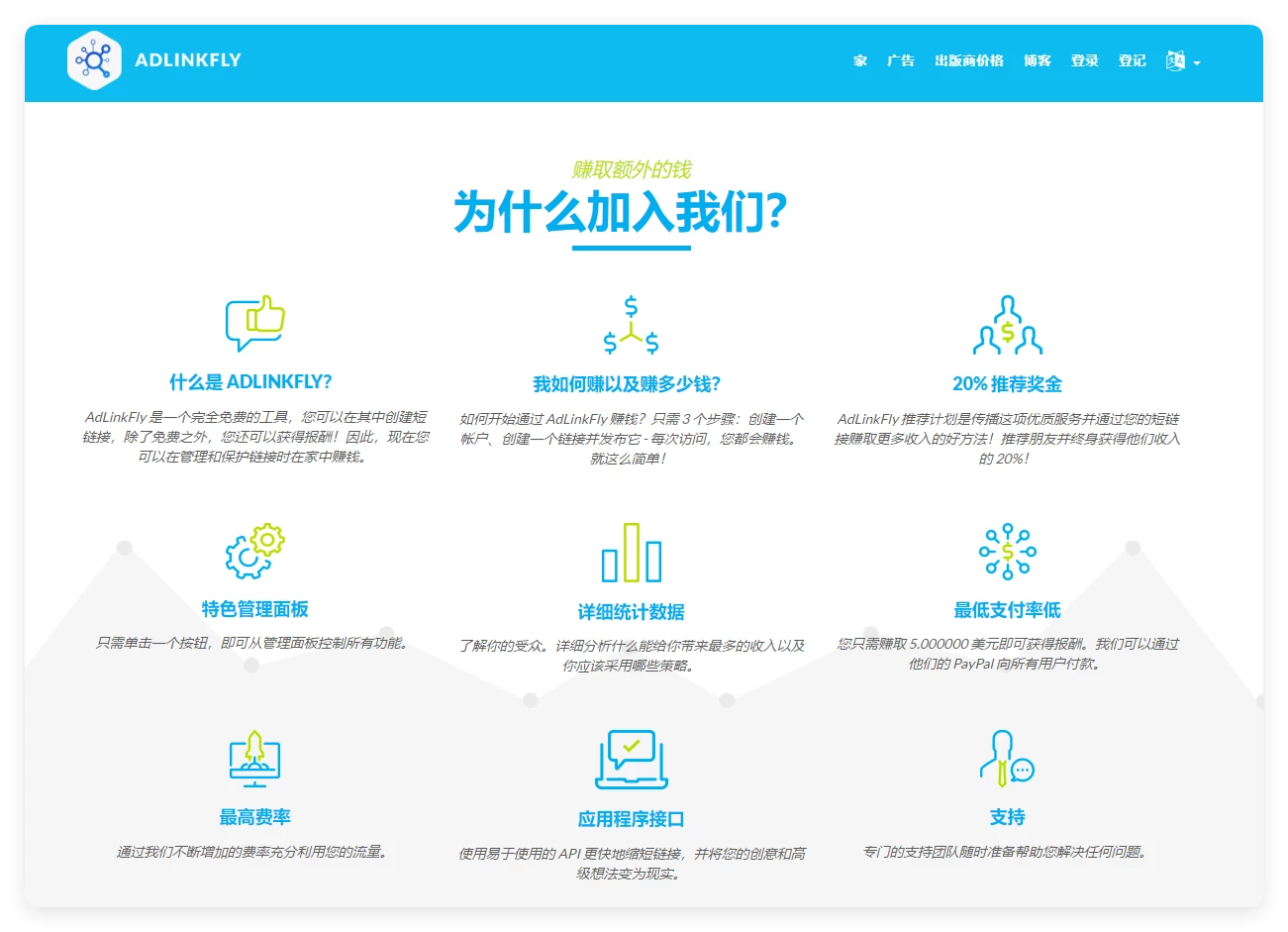 - 发布商和您可以通过在用户点击缩短链接时展示广告来赚钱