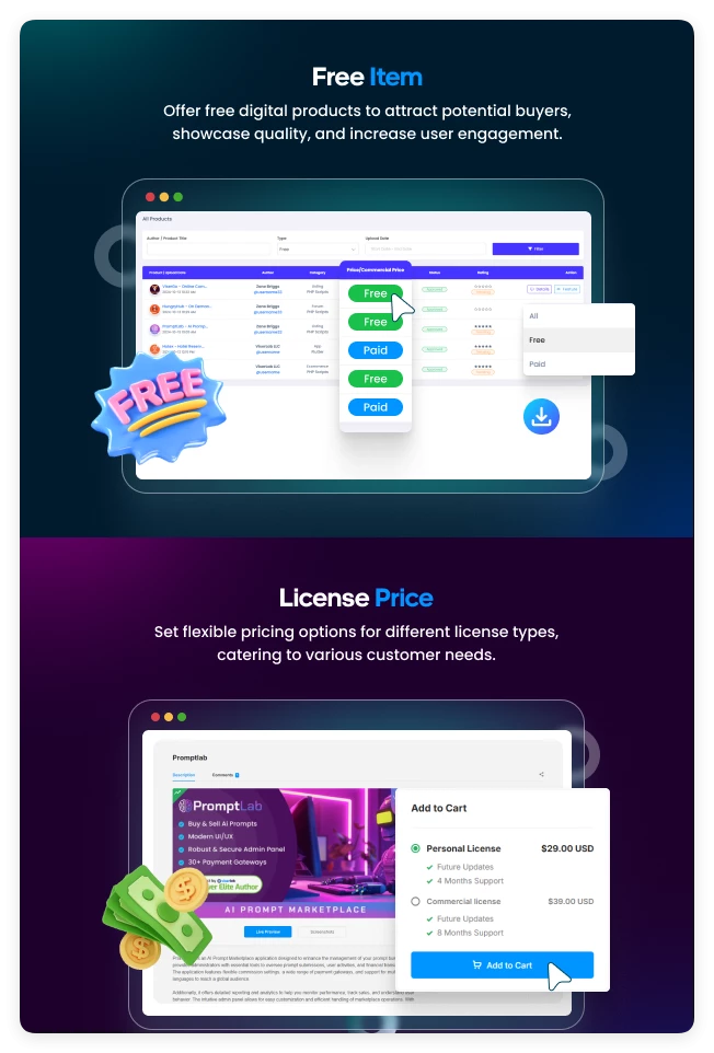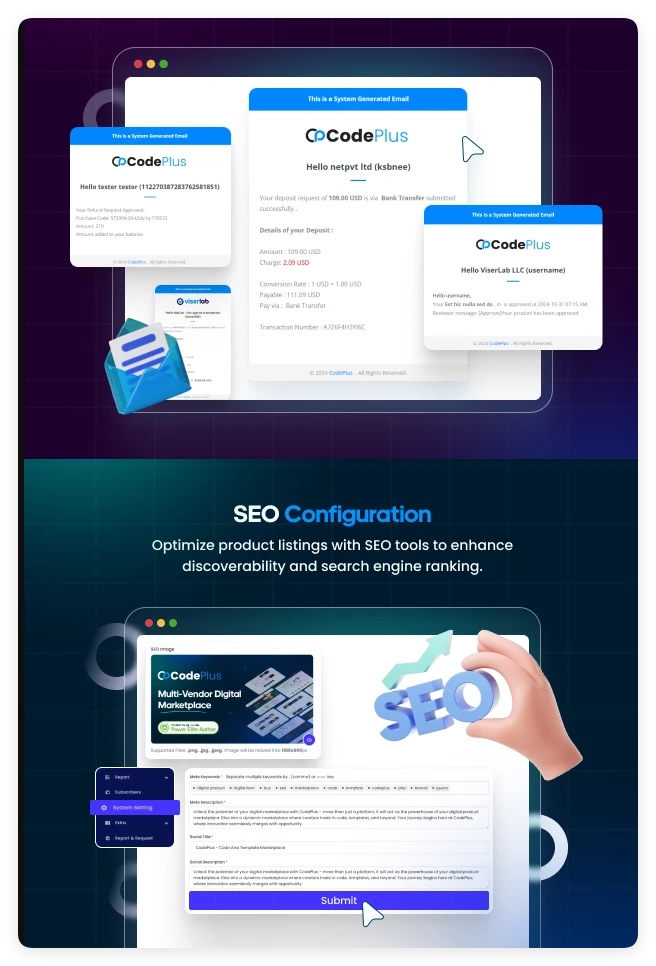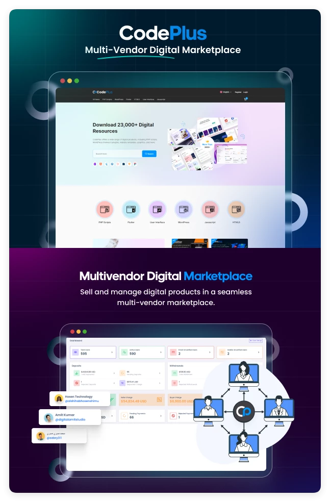 CodePlus 是一个智能且独家的代码和模板销售市场,旨在自动化和提升您的数字商品业务。凭借自动支付、审核者面板、个人资料徽章、安全交易和数字通知等功能,它确保无缝的用户体验,同时通过 OTP 、加密和电子邮件 / 短信通知保持强大的安全性。其用户友好的界面、响应式设计和 SEO 优化使其非常适合快速且经济高效地启动您的市场。 CodePlus 没有月费、隐藏费用或加密,以实惠的价格提供终身解决方案,使您能够轻松开始代码和模板销售业务。