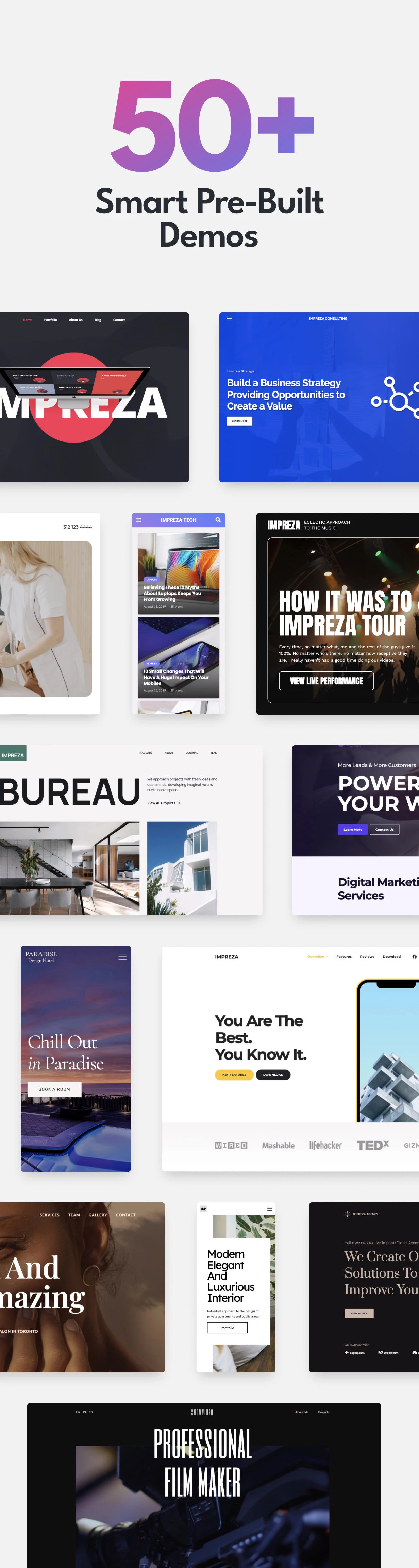 Impreza 是一个现代专业且灵活的完全响应式视网膜就绪 WordPress 主题,在开发时非常注重细节。适用于:代理、艺术家、美容、汽车、教堂、诊所、会议咨询、在线课程、数字、房地产、时尚酒店、室内设计、 IT 、登陆、生活杂志等等