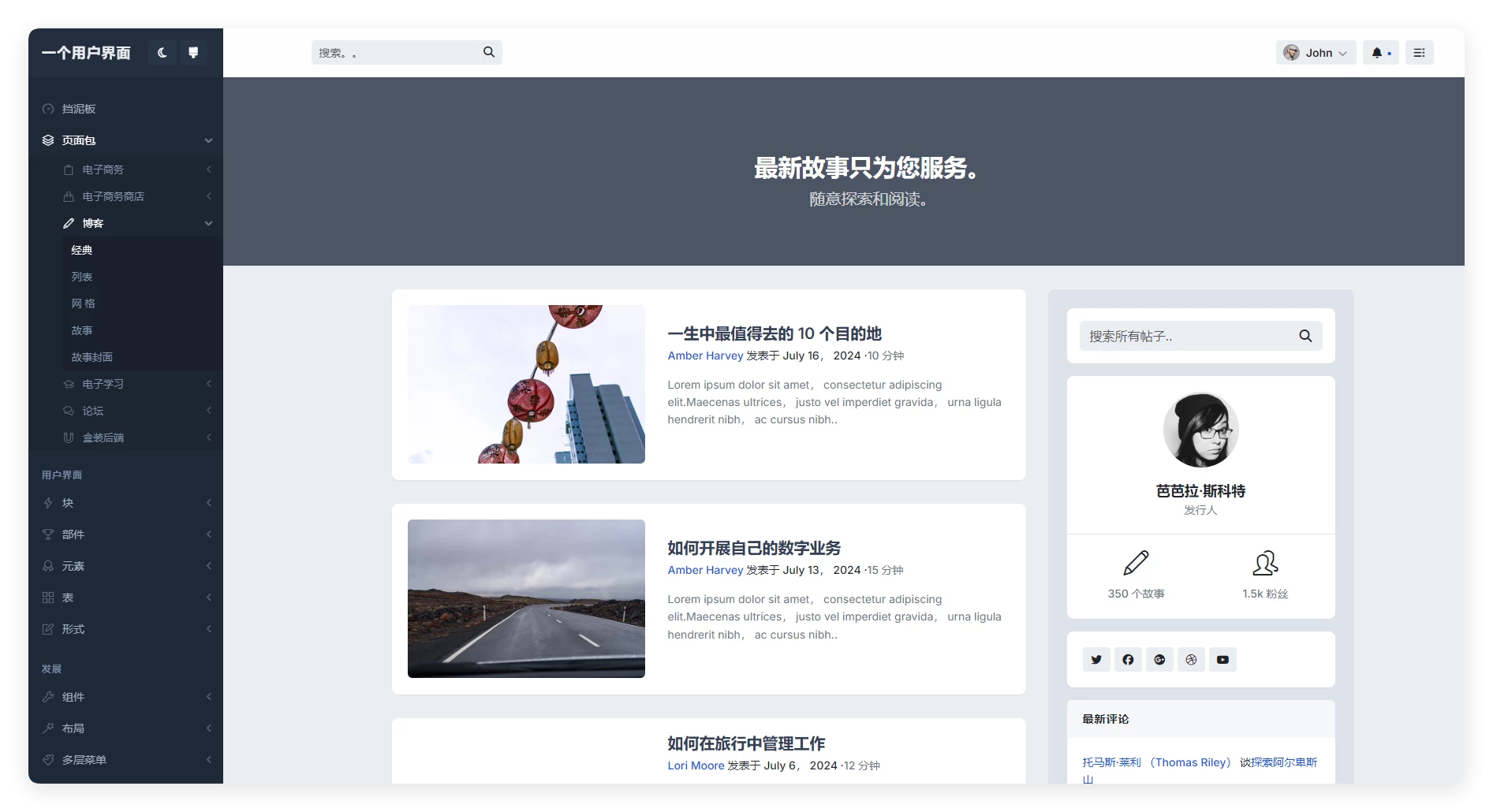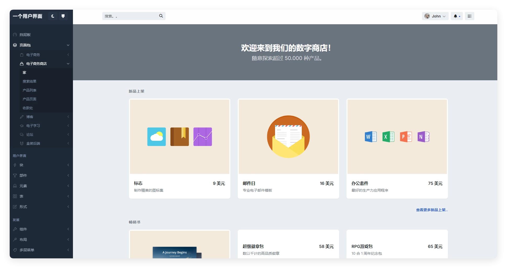 它为其所有颜色主题和示例页面提供了美观的定制深色模式。