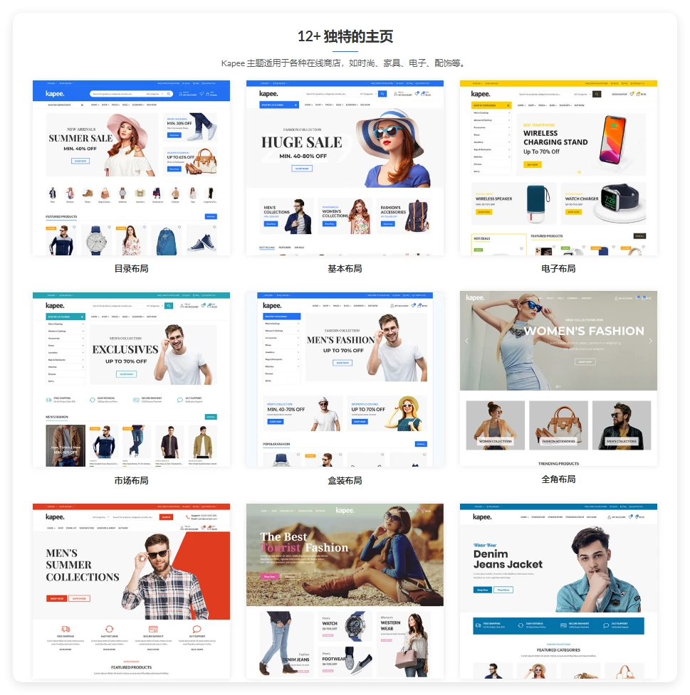Kapee 是快速、干净、高度可定制且响应迅速的 WordPress 主题。此主题适用于所有类型的商店,如时尚、电子产品、家具、配饰或适用于任何类型的 WordPress 网站。